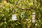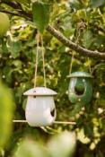 Mangeoire à oiseaux suspendue en céramique élégante avec perchoir. Parfait pour les petits oiseaux de jardin - une solution décorative et fonctionnelle pour l’alimentation en plein air. Facile à accrocher avec de la ficelle naturelle.