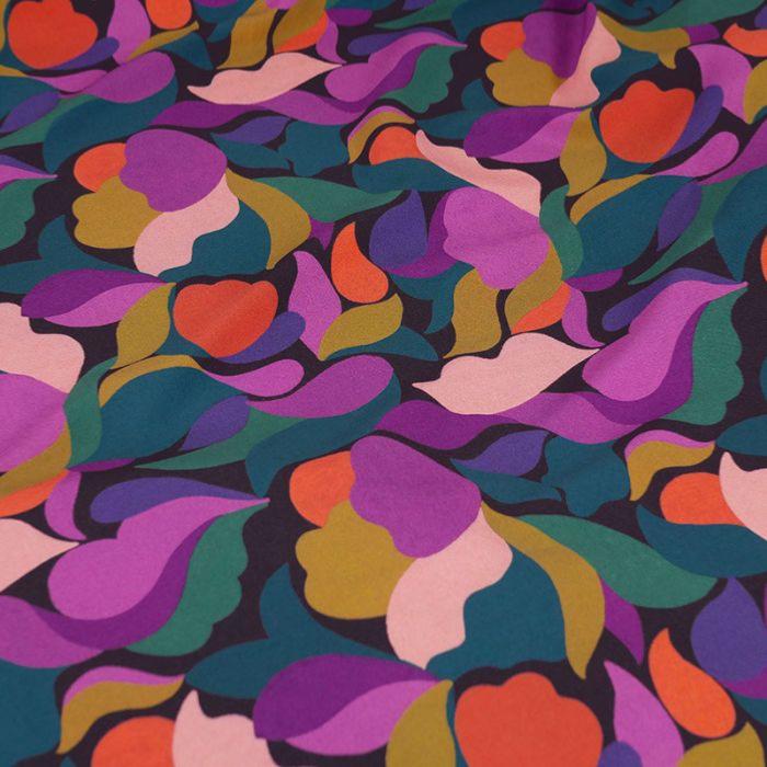Tissu Viscose Pétales VIOLET Une magnifique imprimé pour un très beau mélange de couleurs UNE SUPER QUALITE, et un grand confort avec la présence d'élasthane